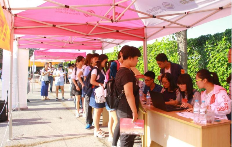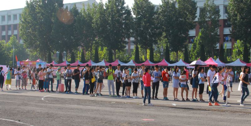 新生们有序等待报到