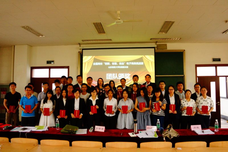 最后,由三位评委为获奖代表队颁发证书,并与获奖选手合影留念。第六届全国高校“创新、创意、创业”电子商务挑战赛山东财经大学校级赛决赛在掌声中圆满落下帷幕。