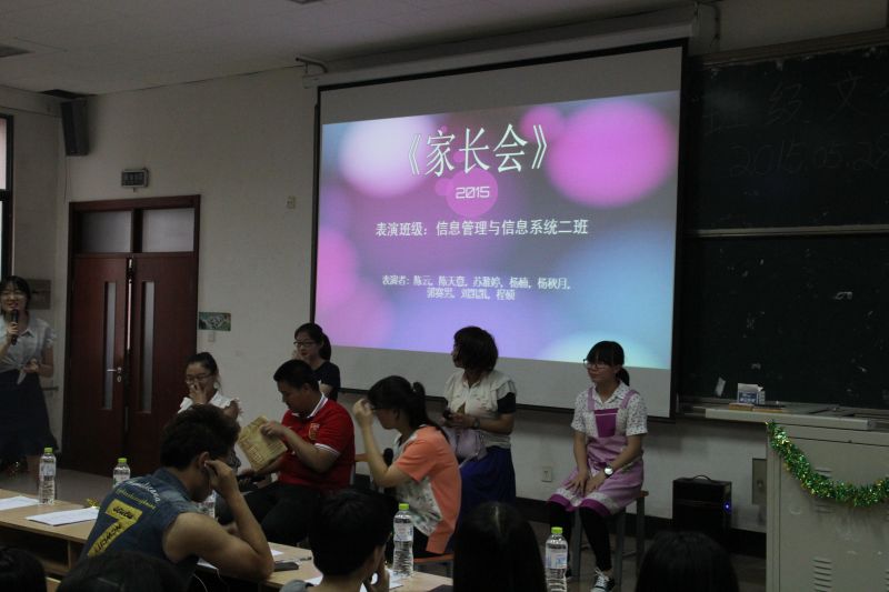 此次活动主要由班级节目汇演与雅舍颁奖两部分组成。首先,由信管二班带来的《家长会》再现了童年时代家长会上的欢声笑语;随后物流一班上演了一段情景剧《王大叉的爱情之路》,给人不一样的感觉;信外一班带来的《歌曲大乱炖》将全场带向高潮;工程一班上演的校园喜剧《人儿何处归》给全场观众带来阵阵欢笑;电商一班带来的话剧《那些年我们追过的女孩》让人重温了那怦然心动的青春;信管一班带来的小品《王英雄》独树一帜,大胆创新,引来全场观众的阵阵欢呼;电商二班带来的话剧《我的大学》以清新幽默的风格展示了当代大学生该有的生活风貌;管理科学的歌舞串烧节目《shake the world》充分调动了全场的气氛,他们劲歌热舞,激情四射,点燃了全场的热情之火。