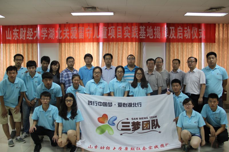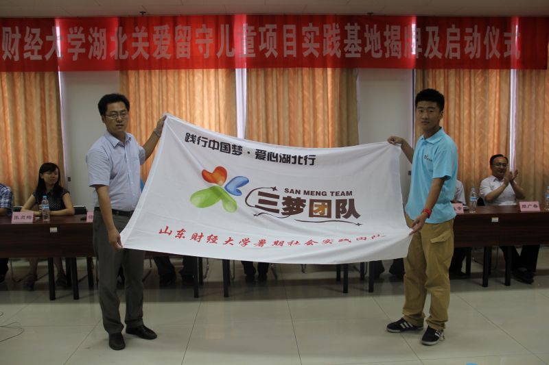 山东财经大学三梦团队队长郝向东代表团队向与会嘉宾介绍了三梦团队,以及三梦团队去年赶赴甘肃地震灾区定西的支教情况,在去年的支教活动中,团队在甘肃定西市临洮县中铺镇开展了为期20余天的支援灾区、关爱留守儿童的支教调研项目,组织200余名灾区留守儿童开展了趣味运动会、图书捐赠,灾区祈福、文艺汇演等一系列关注灾区留守儿童的系列活动,该团队积极与当地教育及相关部门联系,帮助中铺镇小学申请到了近百万元的专项资金用于学校操场硬化,供暖设施改建、食堂维修和教学白板配备项目。三梦团队在新浪“圆梦中国,公益我先行”专项社会实践暨第一届全国大学生微公益大赛中入选全国百强团队并荣获“先进团队”荣誉称号,山东财经大学校团委荣获优秀组织奖。郝向东向嘉宾们介绍了本次支教的前期准备工作和支教活动的实施方案,三梦团队将继续围绕着“爱儿童”的主题开展活动,赴湖北省荆州市监利县开展关爱留守儿童的活动。在监利县,三梦团队将与团中央志愿者部在监利县设立的关注留守儿童的“稻田计划”项目的志愿者组织开展全方位的合作,利用现有基础,可以更好的熟悉当地环境,了解当地留守儿童的相关问题,更加有针对性的开展社会实践活动。希望通过支教团队和广大志愿者们不断的努力,来呼吁全社会更多的人来关注、关爱留守儿童,通过一个全新的视角,让更多的人了解留守儿童这一弱势群体,借助大学生暑期社会实践这一平台,能让社会中更多的元素参与进来,共同为最终解决这一问题而努力。