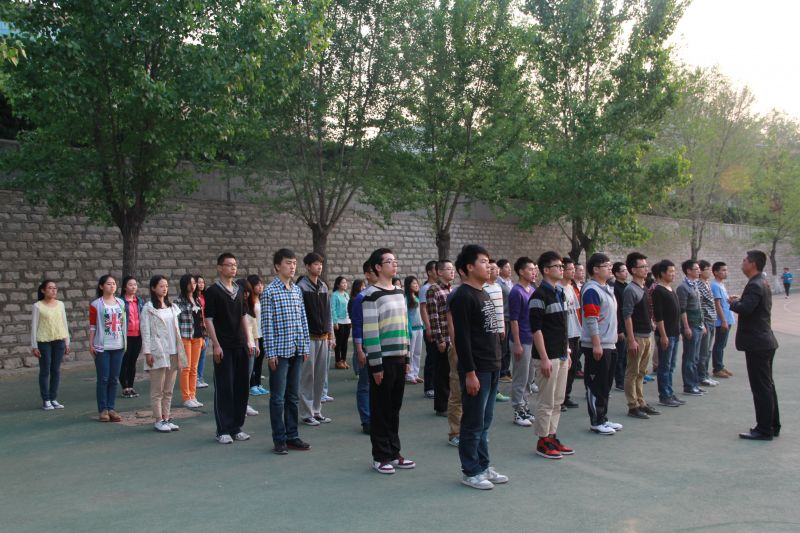 2014年4月9日下午5:30,管理科学与工程学院运动会方阵训练在燕山校区体育场拉开序幕。我院10级辅导员孙智凝和11级辅导员樊庆臣到场主持参加了11级各班60余名学生的首次训练。