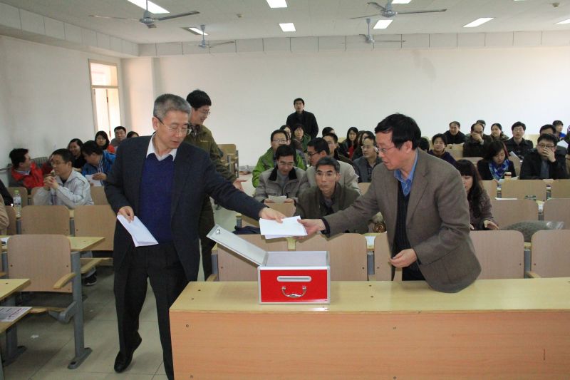 院长张新代表学院领导班子进行了述职。张新从政治思想和党建工作、本科教学工作、研究生教育、学科建设、师资队伍建设、科学研究、学生工作和社会服务等八个方面向全体教职工汇报了学院2013年度的工作。