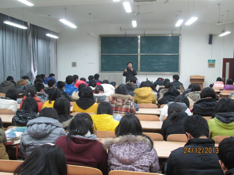 12月24日中午,2013级全体电子商务专业新生在明水1102教室与兼职班主任王洪海举行见面会。