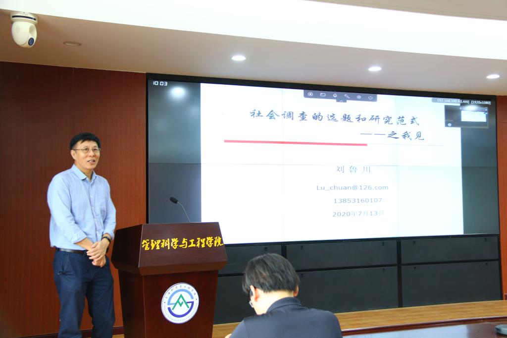 刘鲁川从社会调查的选题和研究范式出发,对调研性社会实践进行了深入浅出的剖析。他认为选题一定要聚焦,最好能小切口反映大背景,一定要避免宏大叙事的选题,同时要对选题进行深挖掘,最好题目要突出研究的贡献和亮点;同时以自己“三千计划”指导过的优秀调研报告参加“挑战杯”的参赛经历为案例,对选题的过程进行了详细的讲解,对实证研究的方法和范式也进行了梳理。孙凯博士以《社会调查中的问卷方法》为题从方法的选择、问卷设计的注意事项、开展访谈的注意事项等三个方面对社会调研中容易出现的问题进行了讲解。何丽对今年的社会实践组队的变化进行了总结,希望同学们在今年的暑期实践中可以更多地将自己的调研成果与专业结合在一起,并注重调研成果向“挑战杯”课外学术论文大赛转换。