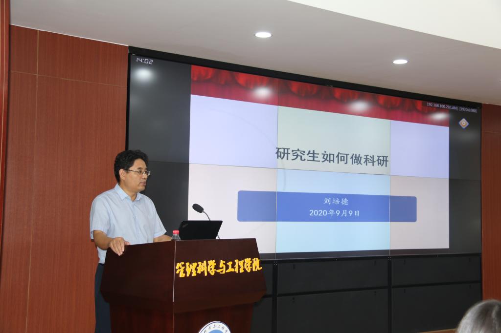 9月9日下午,2020级研究生新生入学教育系列讲座——《研究生如何做科研》在逸夫楼621召开。本次讲座由我院院长、博士生导师刘培德教授主讲,党委副书记朱翠珍主持,2020级全体研究生新生参与了本次活动。