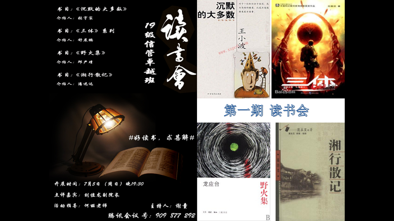 2020年7月5日晚8:00,管理科学与工程学院2019级信息管理与信息系统(大数据与商务分析)卓越创新班在刘位龙副院长和团委书记何丽老师的指导下举办了第一期读书会。