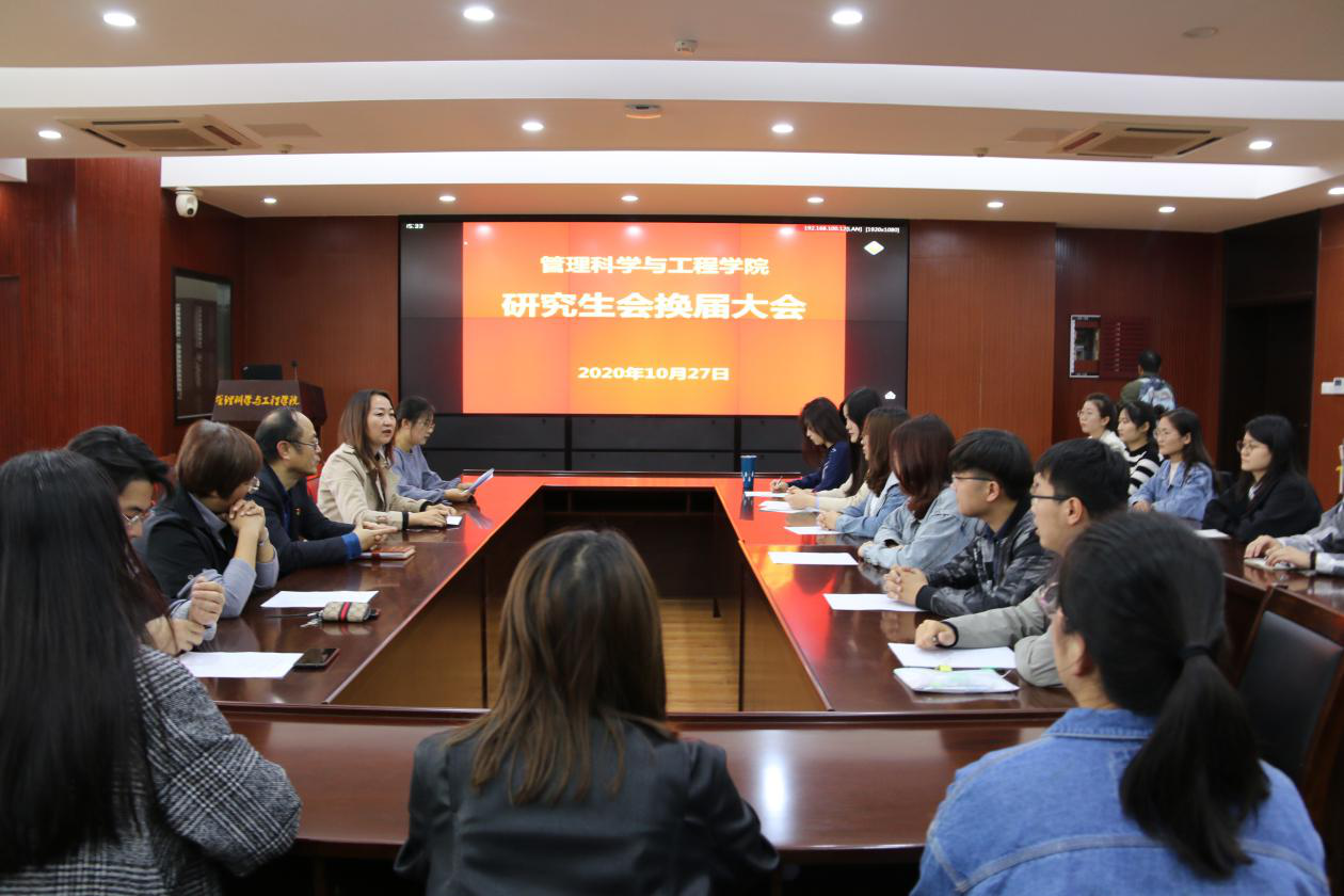 10月27日,管理科学与工程学院第九届研究生会换届大会在逸夫楼621召开。学院党委书记李军、党委副书记崔东峰、团委书记兼研究生辅导员何丽,两届研会成员参加,会议由党委副书记崔东峰主持。