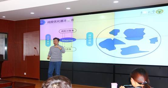 李小平教授从复杂系统的调度优化框架与基本问题、机器调度与服务调度、特征选择与服务模式以及群智协同调度四个方面详细介绍了复杂系统调度智能协同优化相关研究问题。李小平教授讲解了复杂制造过程现状及相关难题,并指出了解决思路;然后从调度生命周期、调度优化基本要素、调度基本操作、重调度与容错调度等方面分析了典型调度问题,提出了多种调度解决方案。最后,学院老师与李小平教授就调度类型、调度优化、算法知识表达等问题展开了交流讨论,