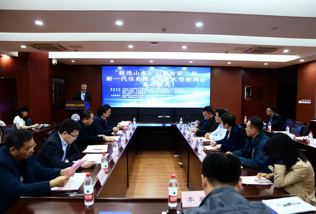 3月27日上午9时,由山东省人力资源与社会保障厅、省工业和信息化厅、省大数据局指导,我校与山东省电子协会、省电子商务协会、省物联网协会等9家省级协(学)会联合主办,山东大学、山东师范大学、青岛大学等省内三十余所高校共同协办,山东财经大学就业指导处、管理科学与工程学院、计算机科学与技术学院具体承办的“就选山东”山东省新一代信息技术人才线上招聘会启动仪式,在燕山校区逸夫楼举行。副校长张新,山东省人力资源和社会保障厅公共就业和人才服务中心就业服务处,山东省工业和信息化厅软件与信息服务处,各协会组织的会长或秘书长,学校就业指导处、管理科学与工程学院、计算机科学与技术学院负责人及企业代表出席了仪式,30余所参与高校相关院系的师生在线上观看了仪式。