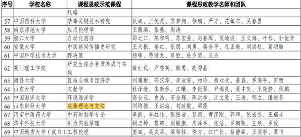 我院刘培德院长及其团队所教授课程《决策理论和方法》入选研究生教育思政课示范课程,成为我校唯一入选的研究生思政示范课,刘院长及其团队也成为我校唯一入选的研究生课程思政教学名师和团队,团队成员有:刘培德,王洪海,刘政敏,梁霞。