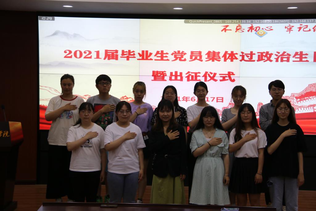 “我年年过生日,却第一次过政治生日,感谢学院精心为我们举行这个仪式,十分温暖!”电子商务专业毕业生党员、入选济南市市中区选调生盖昱臣在学院组织的毕业生党员集体政治生日后感言。6月17日,在毕业之际、七一前夕,我院党委举行毕业生党员集体过政治生日暨出征仪式,毕业生党员、学生党支部书记、党委专职组织员参加仪式,仪式由党委副书记朱翠珍主持。