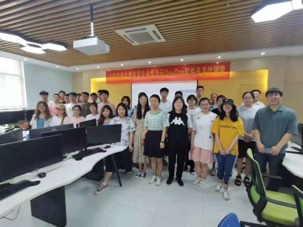 为提高学生对Web项目开发的全面认知,培养学生的互联网应用与开发技能,建设信息管理与信息系统国家一流专业,我院与华为济南创新中心强强联合,实行校企合作、协同育人。2021年暑假前夕,学院在圣井校区和燕山校区举办分别举办了华为云DevOps软件开发优训营实验班课程教学活动,聘请华为云高级工程师入驻校园进行授课,信管系主任刘政敏、副主任杨潇及相关课程老师刘伟华、徐德英、孙凯、吴小平、姜琛凯等共同参与了优训营课程教学。