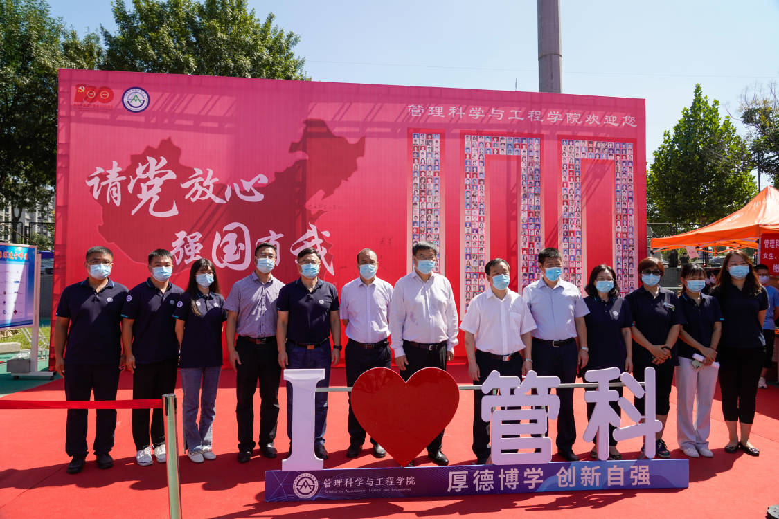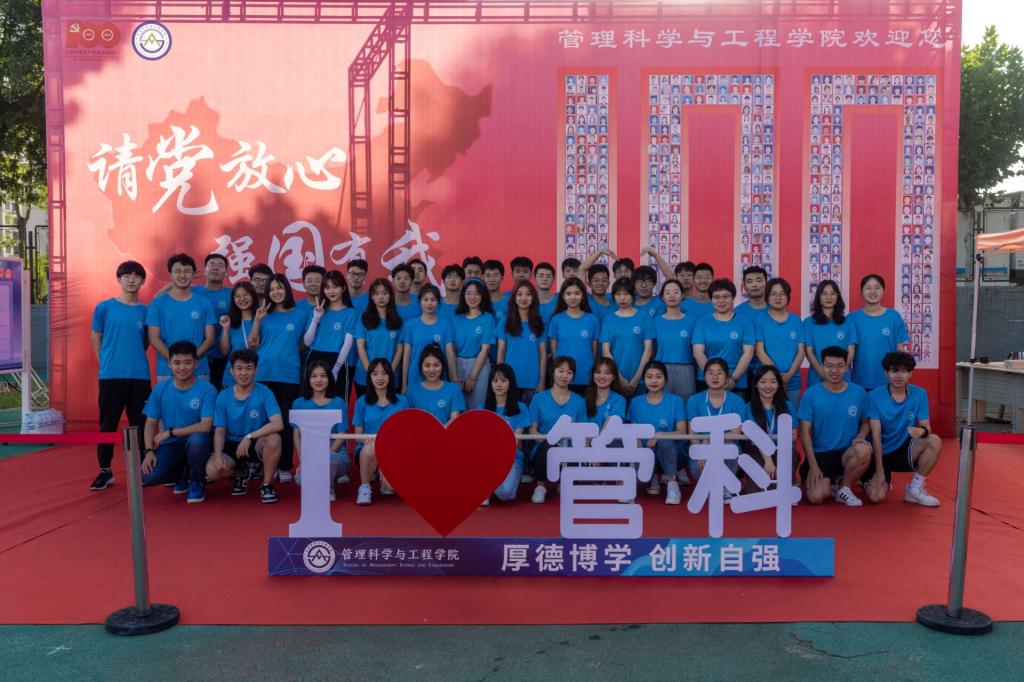 为切实做好疫情防控工作,提高防控意识,学院为所有迎新工作志愿者配备了口罩和清洁用品,并在报到处设立一米等候线,以确保迎新工作的安全进行。迎新过程中,所有志愿者统一身着管科蓝院服,按照报道流程对新生们进行一对一引导,展现了管科院广大学子的良好精神面貌。学院制作了用新生证件照片拼接制作而成的签名展板,号召新生为强国强党进行宣誓签名。新生们兴致勃勃地在展板上寻找自己的面孔,在展板前与父母留下合影。展板上“请党放心,强国有我”的标语下,同学们的签名在阳光下格外耀眼,彰显着莘莘学子的强国决心。