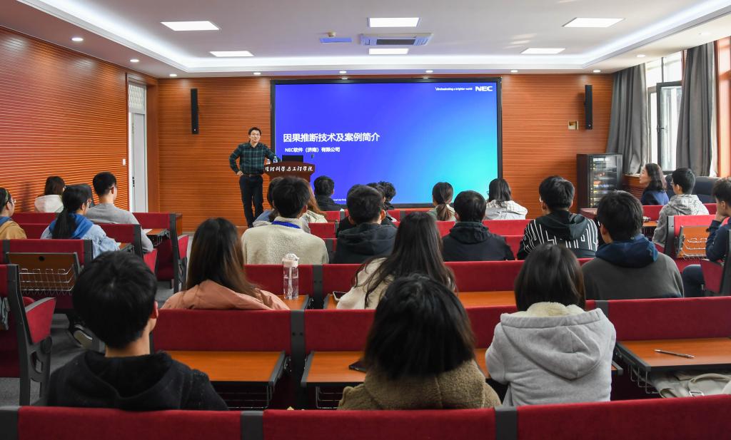 刚刚揭晓的2021年诺贝尔经济学奖,分别授予了劳动经济学和因果关系分析,这使因果关系分析这个研究方向成为大众关注的热点。本次分享会,柳凡从因果关系概述、其所面临的问题、自动因果推断技术和NEC自动因果推断系统四方面进行了详细的介绍和阐述,并结合影响玉米种子发芽的因素做了实例讲解。通过深入浅出的诠释和精准精炼的讲解,让在场同学了解了因果关系的概念,丰富了同学们的专业知识,开阔了专业视野。最后,同学们围绕专业知识、实习实训和考研深造等方面与专家和老师进行了充分的交流。