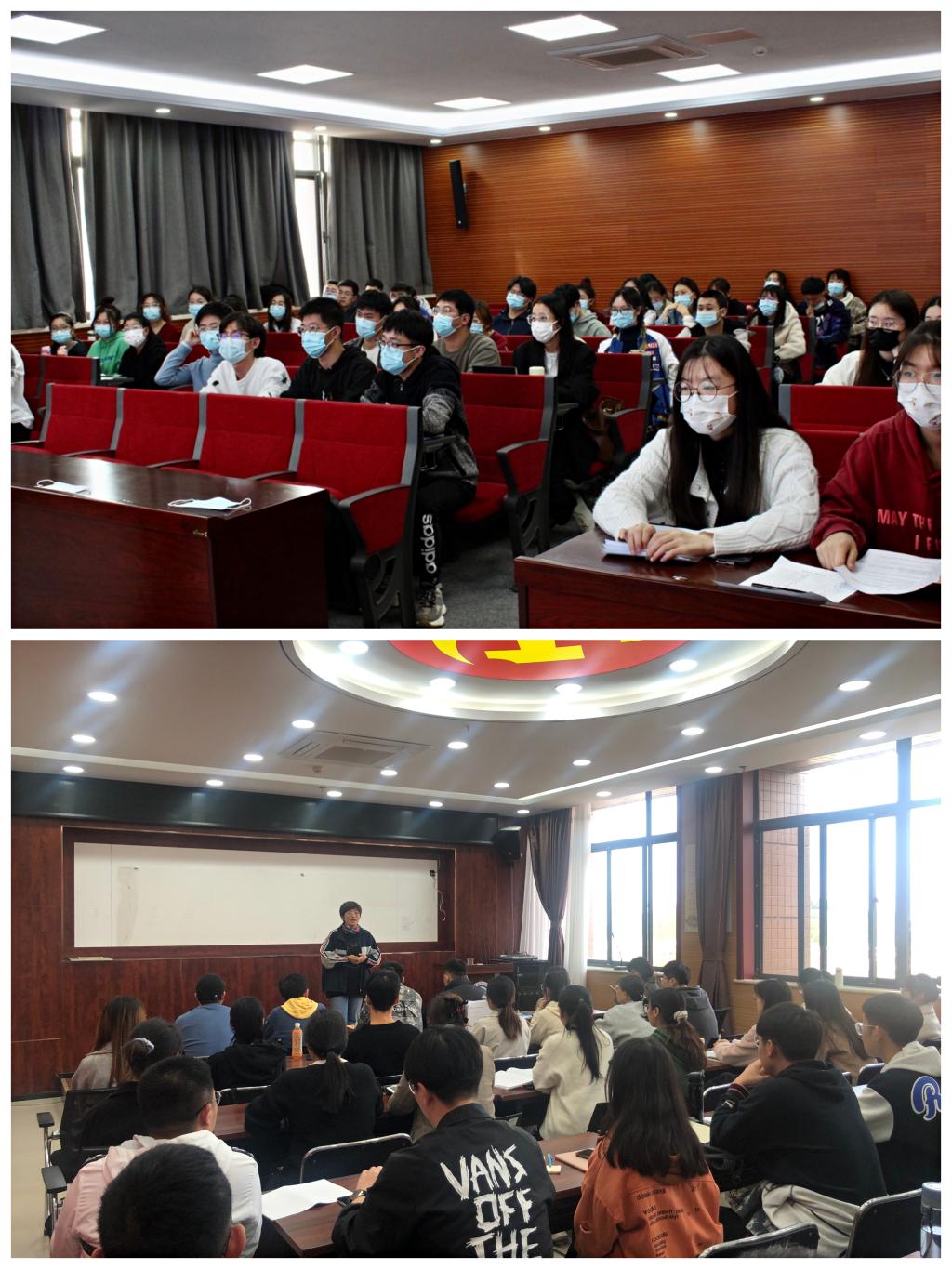 党委副书记崔东峰和朱翠珍分别在两个校区对本期党课培训提出了要求。崔东峰强调了党课培训的重要作用,重申了党课培训纪律,要求大家从思想、行动上高度对标合格党员的要求,积极争取早日入党。朱翠珍通过对比近两年党员发展情况对党员发展对象们提出了加强学习、遵章守纪、知行合一等要求。随后,党委专职组织员冯婧,学生第一党支部书记满宠、第二党支部书记孙智凝、第四党支部书记李涛分别上了专题党课。