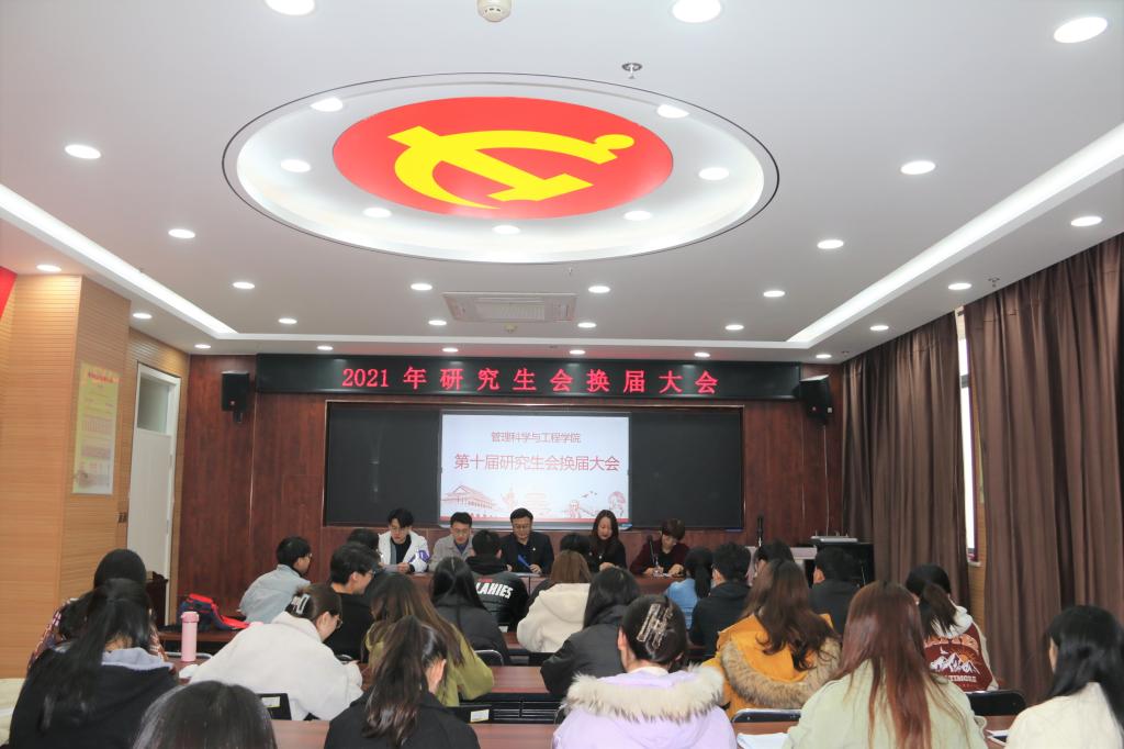 11月16日,管理科学与工程学院第十届研究生会换届大会在逸夫楼610召开。学院党委书记李军、党委副书记崔东峰、团委书记兼研究生辅导员何丽,两届研会成员参加,会议由崔东峰主持。