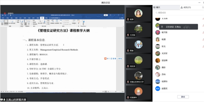 2022年2月20日,我院召开管理科学与工程硕士研究生课程大纲修订线上研讨会。会议由副院长马建华主持,学院副院长刘位龙、教授委员会主任刘兴华、各课程负责人和主讲教师共25人参加了会议。