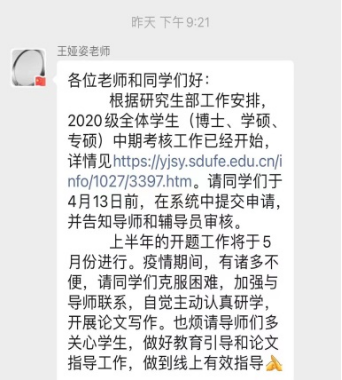 三、导师及时掌握学生思想动态,学院稳步推进学位管理工作