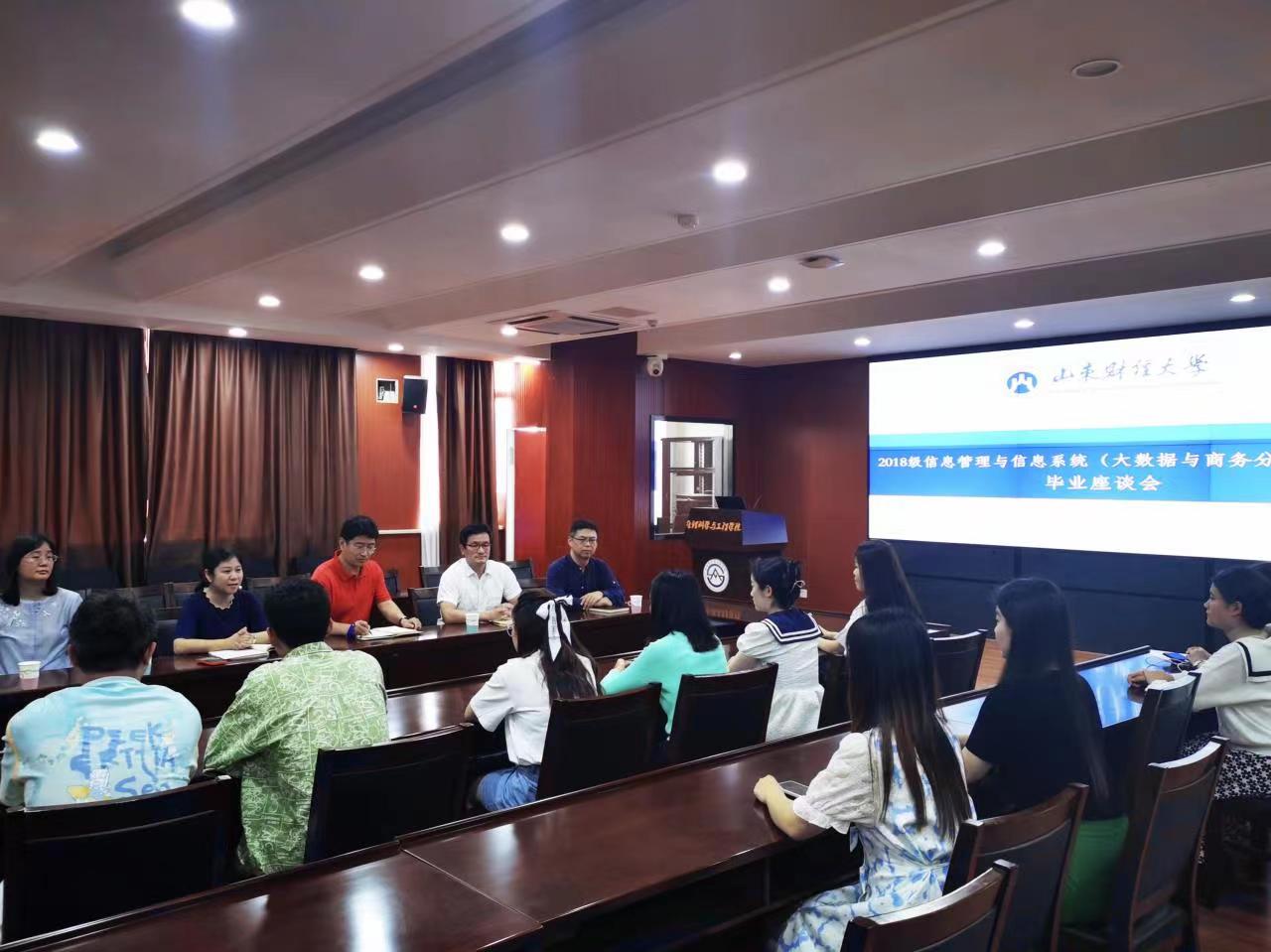 2022年6月14日下午3时,2018级信息管理与信息系统卓越创新班毕业座谈会在燕山校区逸夫楼621教室举行,学院党委书记徐世星、院长刘位龙、党委副书记吕晓燕、班主任杨潇,辅导员孙智凝,以及2018级卓越创新班部分学生代表参加了毕业座谈会,会议由党委副书记吕晓燕主持。