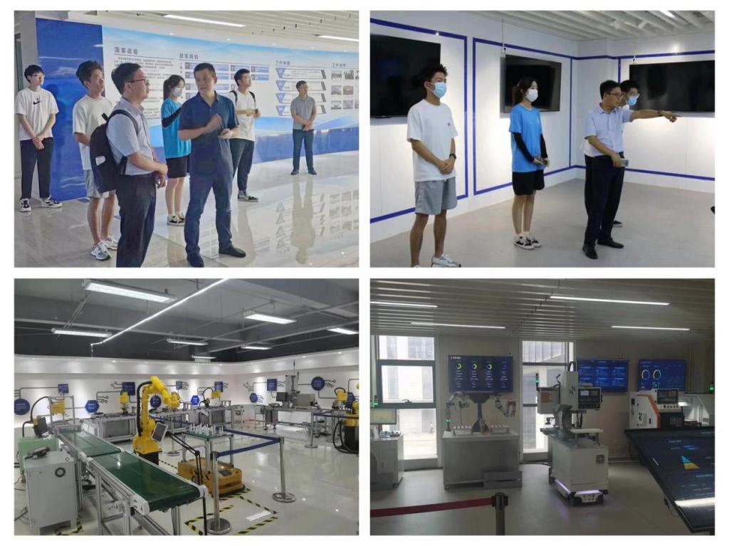 调研团队先后参观了青岛市工业互联网创新示范平台的智能工厂、智能生产线和智能机器人等多个演示车间。在智能生产线的应用场景中,张戈老师和即墨区工信局吴明主任向同学们普及了在工业互联网如何赋能机器设备完成点焊、螺柱焊、搬运、产品信息登记、入库等自动化操作,展现了工业互联网平台对制造业带来的数字化转型升级。