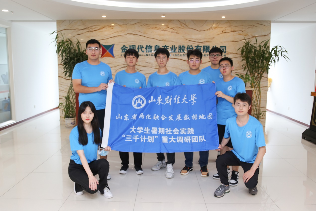 7月28日,我院社会实践“三千计划”重大调研课题“山东省两化融合发展数据地图调研团队”于济南市进行实地调研。在院党委书记徐世星、副院长王洪海和团队指导教师张戈、梁乙凯、王小斌、徐德英的带领下,八名济南籍同学到金现代信息产业股份有限公司进行调研访谈。