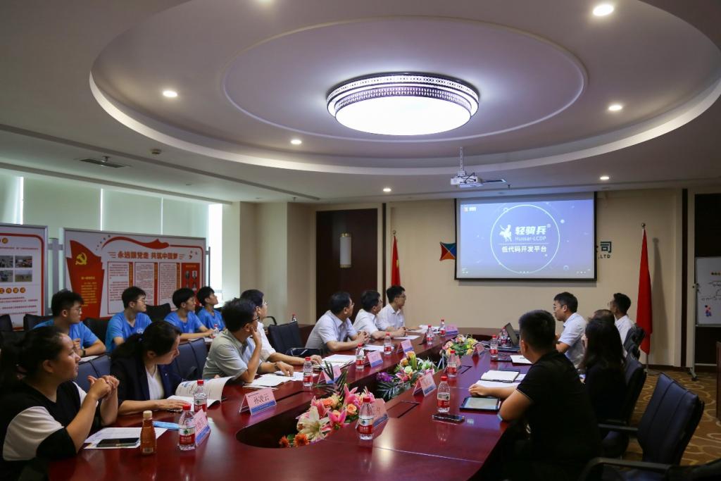 座谈会上,金现代企业负责人详细介绍了公司发展、核心技术、产品和解决方案等基本情况,着重演示了公司自主研发的王牌产品“轻骑兵低代码开发平台”。
