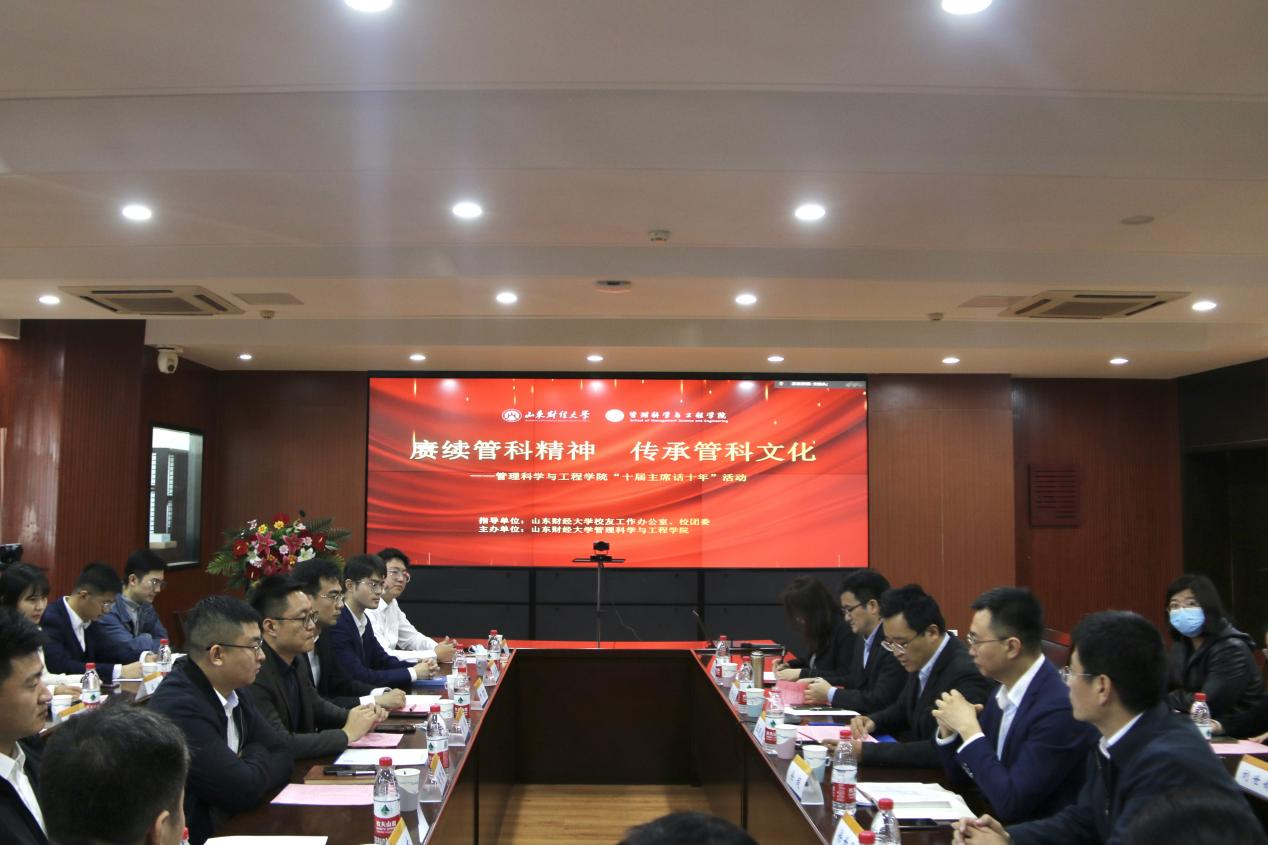 在交流研讨环节,历届主席逐一分享了毕业几年来的成长历程与人生感悟。在他们的讲述中,有学生时代工作的心得经验,也有步入职场升迁进阶的奋斗感悟,言语中流露出对母校的深切思念以及重回母校、重见恩师的喜悦之情,同时表达了对学校学院教导与培养的深切感谢。主席们还就专业教学、校友交流平台搭建、学生会活动筹划等方面提出了不少有益建议。他们纷纷表示为母校现在取得的成绩而感到自豪,日后将在社会各个岗位不断学习、努力工作、报效祖国、奉献社会,不负山财大管科人的精神传承,同时希望以此为契机,尽己所能地助力母校建设,为母校发展提供各项支持和资源分享平台,为学院人才培养、教学科研、产学研合作、文化传承等各个方面的发展贡献更大力量。