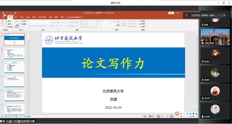 10月29日上午,北京建筑大学电气与信息工程学院计算机系副主任、计算机系教工党支部书记张蕾教授应学院邀请,在线上为我院2022和2021级研究生做了题为“论文写作力”的主题讲座。讲座由我院管理科学与大数据系主任杨成伟老师主持,学院副院长刘政敏教授参加了讲座。