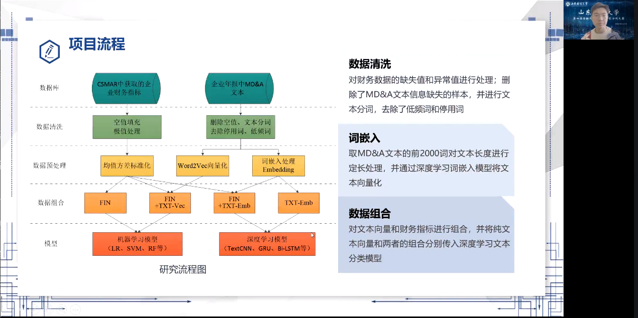 12月1日下午,由校团委与管理科学与工程学院主办,山东财经大学数字经济研究院协办的山东财经大学第四届金融网络爬虫及智能分析决赛在线上举行。校友福卡斯信息科技有限公司董事长杨乃坤、学院王高山教授、杨成伟副教授、贾可亮副教授、王会东副教授、王重仁副教授担任评委,此次比赛由学院团委书记何丽主持。15支团队经过激烈角逐,最终评出一等奖4个,二等奖5个,三等奖6个。