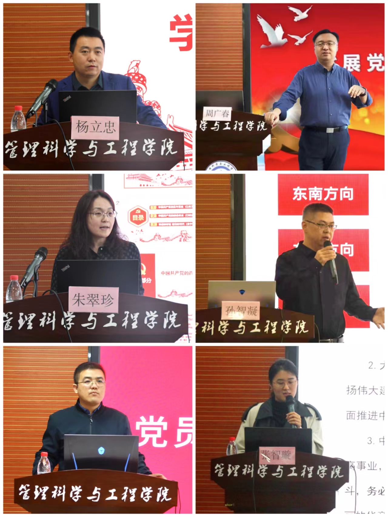 近日,管理科学与工程学院党委在圣井校区6432报告厅举办党员发展对象培训班。开班仪式由学生第一党支部书记满宠主持,学生第三党支部书记王桂月、学生第二党支部副书记张智璇参加开班仪式。仪式过后,满宠以《学习党的二十大 青春筑梦正当时》为题做首场培训,党委组织部正处级组织员杨立忠,学生工作部副部长周广春,学生第二党支部书记孙智凝、副书记张智璇也先后为学院党员发展对象讲授专题党课。本次培训采用线上线下相结合的方式,70名发展对象以及全体入党积极分子参加。