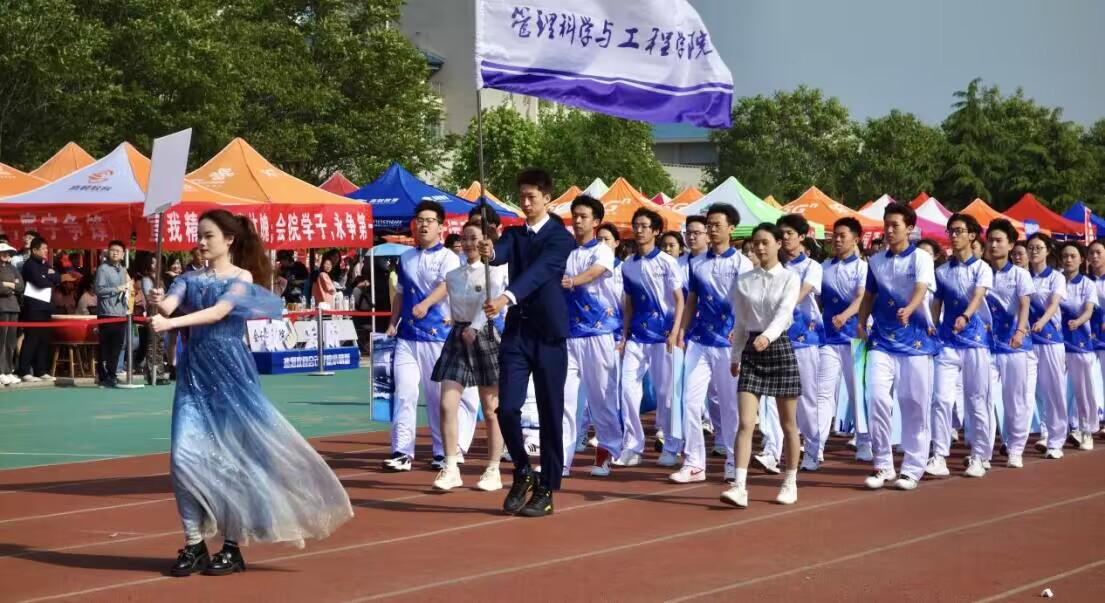 27日上午8时,陶虎副校长发表重要讲话,宣布本次运动会开幕式正式启动。最先映入眼帘的,是激动人心的入场仪式。伴随着振奋人心的《运动员进行曲》,各学院运动员方队踏着矫健的步伐,挥舞着彩旗和鲜花,在国旗班,红旗队的带领下依次入场,接受全校师生的检阅。目光来到管科,我们可以看到,一群自信昂扬,意气风发的青年踏着整齐的步伐走过主席台,俨然成为操场上夺目的风景线,我们可以听到,“厚德博学,创新自强”的口号在操场上激荡,彰显着属于管科的气质与荣光。方队检阅完毕之后,开幕式的气氛也推向了高潮。随后,裁判员代表、运动员代表分别在开幕式上庄严宣誓,切实保证做到“公平、公开、公正”执裁,自觉遵守体育道德,发扬顽强拼搏、赛出水平、赛出风格的体育精神。