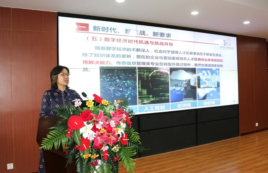 5月25日,北京信息科技大学王兴芬教授莅临我院指导工作,于逸夫楼621做了题为“新时代背景下信管与数管专业建设的思考与实践”的专业报告,我院副院长刘政敏教授、王洪海教授和各专业系老师20余人参加了交流。会议由学院刘位龙院长主持。