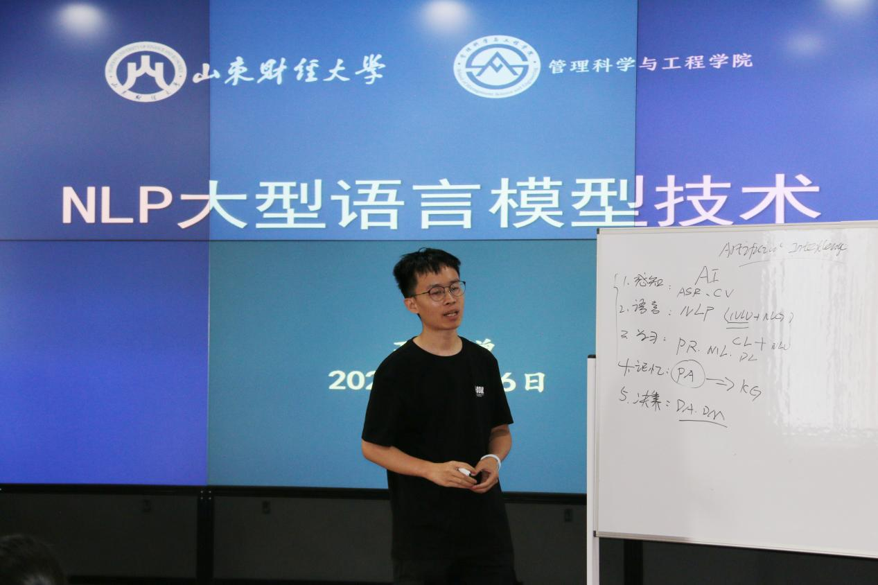 产业教授团队成员王宗增讲座是“NLP大型语言模型技术”。首先,王宗增列举了各应用领域中使用的主流人工智能技术并介绍相应的数学原理。随后,介绍了进行数据分析和数据挖掘两大关键技术:特征工程和EDA(探索性分析),认为数据和特征决定了机器学习的上限,而模型和算法只是为了逼近上限。最后,他重点讲解了大型语言模型,并以近十年来的两个主要研究范式为基点,梳理了大型语言模型的发展脉络,介绍了各阶段的主流技术。