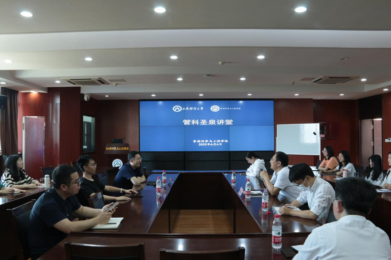 2023年6月6日下午,我院在燕山校区逸夫楼621举办管科圣泉讲堂产业教授专题系列讲座。我校产业教授、浪潮集团高级研究员、山东浪潮超高清智能科技有限公司虚拟现实产品部副总经理王培元,产业教授团队成员、山东浪潮超高清智能科技有限公司虚拟现实技术经理王宗增,大数据与人工智能研究院院长刘培德,学院部分老师和学生参加了讲座,学院副院长王洪海主持讲座。