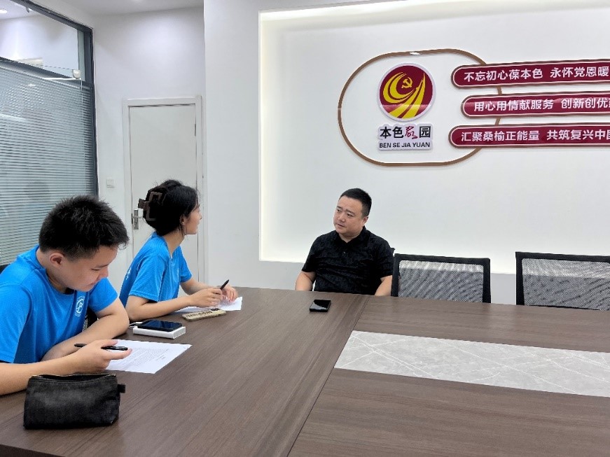 在讲解和参观结束后,调研团队成员与居委会工作人员、党群服务中心工作人员、社区党支部书记代表及在场居民进行了友好融洽的谈话,并收集了相关问卷数据。在访谈过程中,大家侃侃而谈,纷纷对“高质量推进社区治理智能化建设情况”这一论点发表了自己的看法。通过对康成花园社区的实地调研,调研团队成员们深切体会到了“爱社区如家”的主人翁精神。
