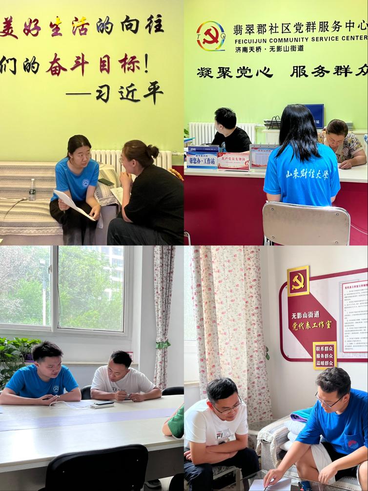 下午两点,调研团队到达了第二站——翡翠郡南区社区党群服务中心。通过和社区工作人员交谈,调研团队的成员们发现,社区党群服务中心会不定时为居民举行党建活动,并设立“济南智慧社区平台”为居民提供切实服务。团队成员们在社区工作者的介绍下了解了翡翠郡社区智慧平台中通讯类、缴费类的相关应用、为提升生活便捷度而设立的“十五分钟生活圈”、社区动态信息发布的相关流程等。社区工作人员介绍到,通过技术手段实现的智能化智慧平台不仅提高了社区工作的服务效率,还提升了社区居民的生活质量与幸福感。最后,我院调研团队分组采访了社区的工作人员并向其发放调查问卷以便后续的数据处理。