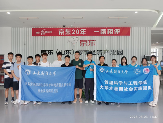 随后,在园区负责人的引导下,团队在山东黄河数字经济产业园的“园中园”京东(山东)数字经济产业园进行了参观和座谈,对京东的发展历程及在园区的发展现状、取得的成就以及未来发展规划有了深入的了解,同时对京东园区“云+产业”的智能物联和线上经济相结合的合作模式进行了深入的研究,对该模式在推动黄河流域高质量发展的可复制性进行了探讨。团队认为,随着新模式的推广新动能的普及,该园区对黄河流域的辐射带动作用将进一步加强,旧模式、旧业态、旧能源得以被替代,黄河流域的生态问题也将随之减轻。