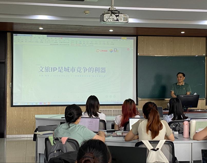 胡近东老师首先以淄博为例,深入浅出地分析了淄博是如何打造出以烧烤为核心特色的文旅城市形象,但也指出淄博并没有完全形成城市IP,让同学们了解了在当下这个数字商业时代打造城市IP的重要性以及难度,并且深刻地指出,在电商时代,无论是个人、商家还是城市,都应当打造属于自己的独特的IP。然后,胡近东老师以济南为中心,讲解了贝壳视频是以何种方式打造出济南“新媒体之都”、“创作之城”的IP。接着又引出了村超、旅游文创等热点词对城市IP的赋能。最后以“得IP者,得天下”的总结语结束了本次讲座。