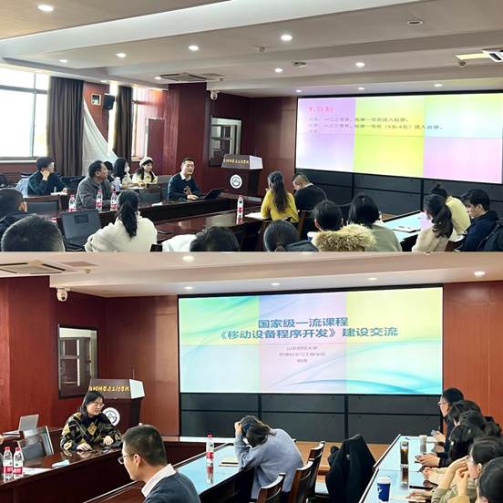 培训会上,王洪海结合自己在课程思政建设和课程思政示范课程申报中的经验,从思政元素抽取、融入、巩固等方面进行了交流,同时分享了课程思政示范课程申报中应该注意的一些问题。随后,电子商务系副主任董坤祥分享了自己参加2022年山东省青年教师教学比赛的经验和体会,董老师从赛制、评分标准、教学设计以及PPT制作四个方面介绍了提高比赛竞争力的策略、途径与方法。接着,信息管理与信息系统系副主任杨潇分享了国家一流课程《移动设备程序开发》的建设经验,杨潇从课程建设历程、教学过程中的思考、申请书的撰写等几个方面进行了详细解读。最后,参会新老教师就自己教育教学过程遇到的一些问题和困惑进行了沟通和交流。