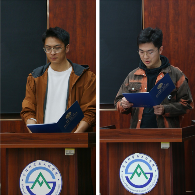 会议伊始第十一届院研究生会主席李佳旺对上一届的学生工作做了总结陈述,新一届院研究生会主席李乔作了表态发言,表明新一届研究生会将以服务为根本,以团结为核心,以创新为导向,为学院发展贡献自己的力量。