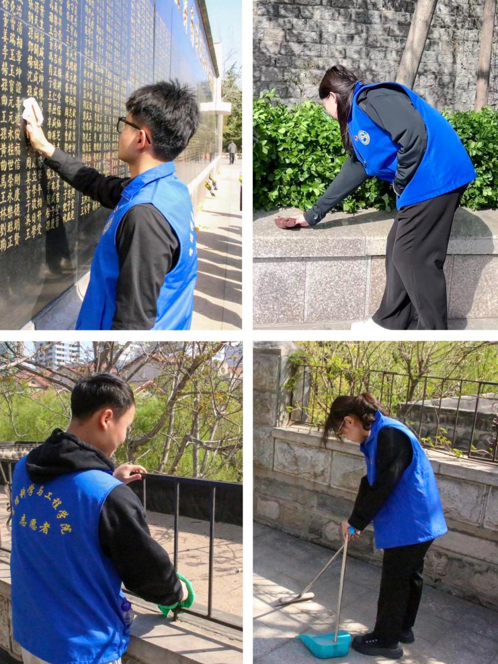 活动最后,在两位老师带领下,全体同学身着我院志愿服,开展志愿服务清洁活动。同学们怀着无比敬仰的心情擦拭烈士纪念碑,并对阁外尘土与垃圾进行了仔细清扫。