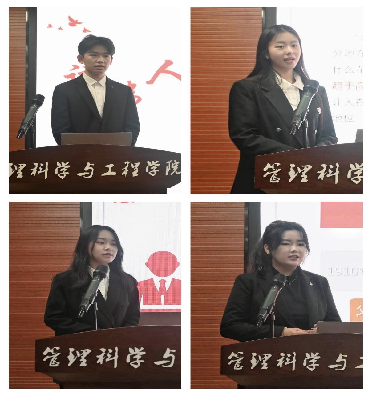 在圣泉书院两期“述往追来”特色读书活动的熏陶和带动下,4月15日,管科学院大学生理论宣讲团在圣井校区6432教室,以“读伟人著作,立青年之志”为题举办了一场别开生面的研讨式宣讲。学院党委书记徐世星,宣讲团指导老师、学校“多触角两栖式”辅导员素质能力提升工作室主持人冯婧出席了活动,活动由宣讲团成员王辰洋主持。
