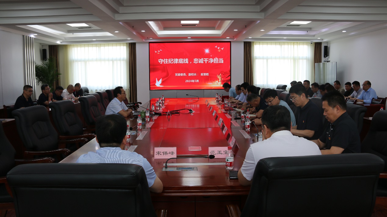5月28日,赵奎皓副校长以《守住纪律底线,忠诚干净担当》为题,在燕山校区办公楼七楼会议室为分管部门和联系单位讲授了一堂深刻生动的党纪学习教育专题党课。