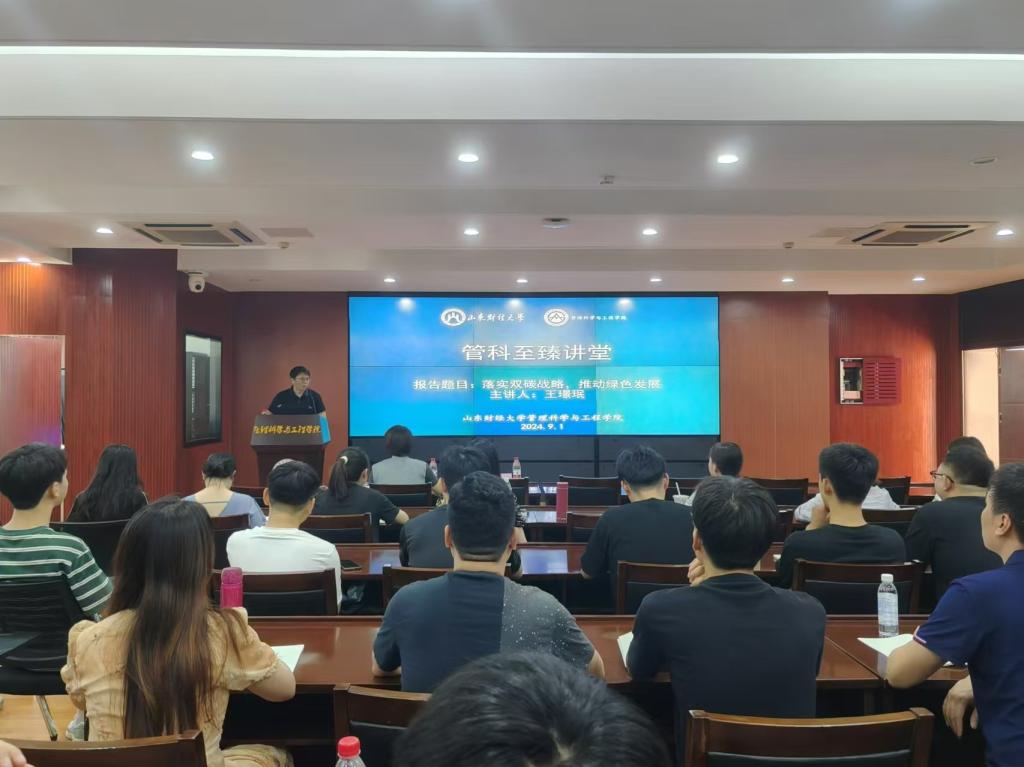 9月1日上午,管理科学与工程学院在逸夫楼621举行了24级研究生迎新专题学术报告,邀请了山东财经大学中国国际低碳学院院长王璟珉教授和齐鲁工业大学经济与管理学部主任李晔研究员分别开展了“落实双碳战略,推动绿色发展”和“新一代人工智能发展背景及趋势”的学术报告。报告会由副院长刘政敏教授主持,学院师生50余人参加了报告会。