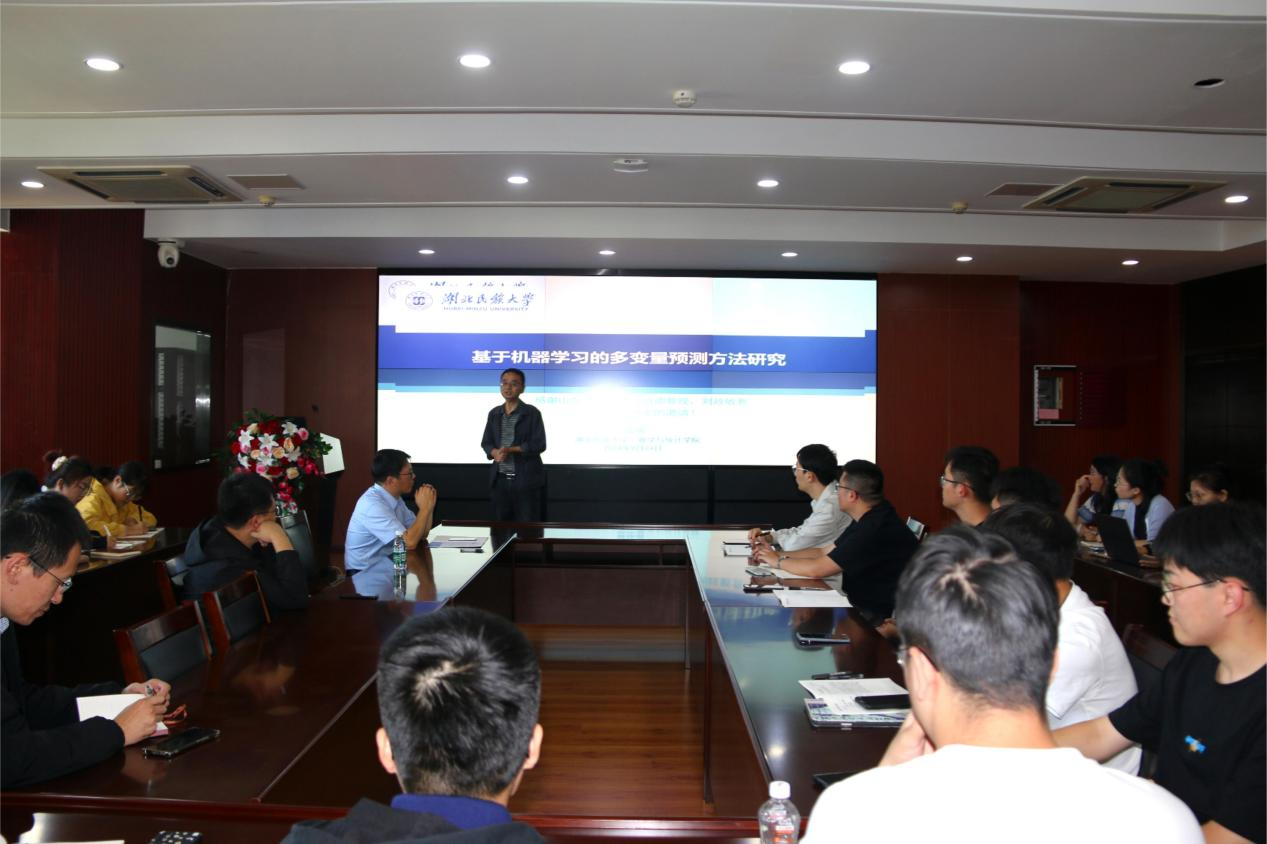 2024年9月24日,湖北民族大学詹建明教授应邀来我院作主题为“基于机器学习的多变量预测方法研究”的学术报告。报告会由副院长刘政敏教授主持,我院部分师生参加此次报告会。