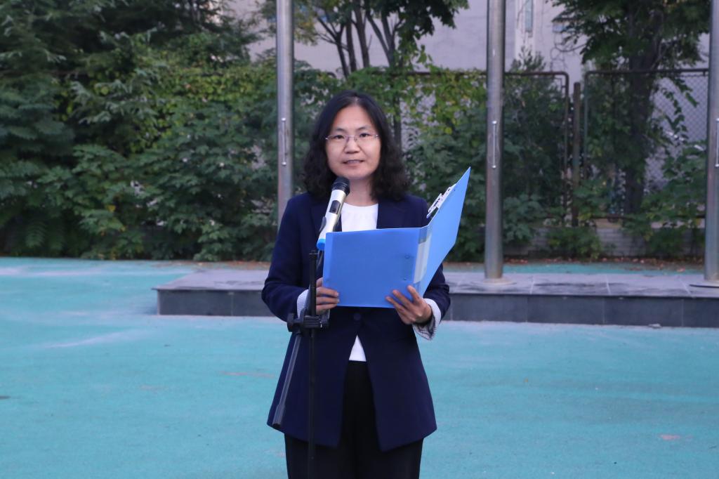 王桂月作为教师代表发言,她指出,身处新时代,我们应当牢记先辈们的英勇事迹,以他们为楷模,文明修身,严于律己,用实际行动为实现中华民族伟大复兴的中国梦而不懈奋斗。同时,她向同学们提出三点希望:一是各班级要认真组织文明修身各项活动,并做好宣传工作,确保活动取得实效;二是弘扬文明风范,从我做起,一起营造风清气正、文明和谐的校园环境;三是继承红色基因,坚定信念,不负韶华,以青春之我、奋斗之我,为民族复兴铺路架桥,为祖国建设添砖加瓦,共同创造更加美好的未来。