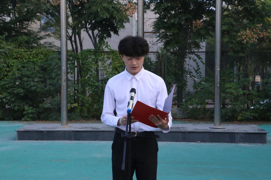 2024级新生曲俊豪在发言中表示,作为新时代的青年,要时刻牢记党的宗旨,自觉践行社会主义核心价值观,以文明律己为荣,努力争做有理想、有担当、有品质的大学生。