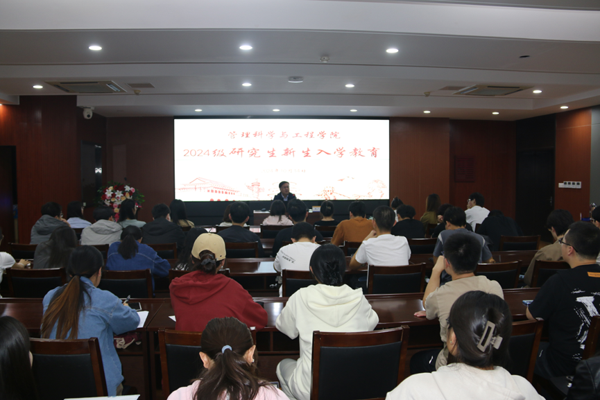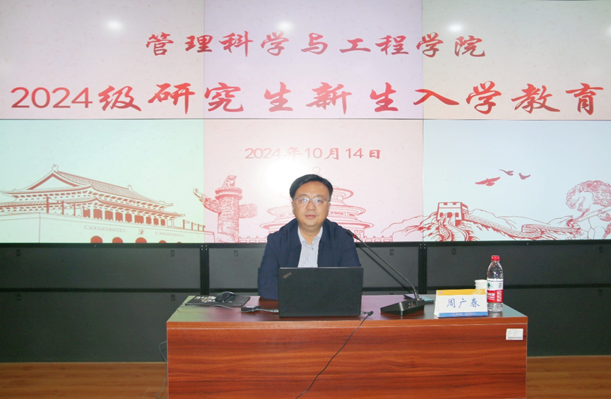 为帮助2024级研究生新生更好地了解学校的规章制度,强化纪律意识、安全意识、责任意识,营造良好的校园氛围。10月14日,管理科学与工程学院邀请学生处副处长周广春做了以“校规为桨,纪律启航”为主题的入学教育讲座。本次讲座由我院党委副书记朱翠珍主持,2024级全体研究生新生参加了讲座。