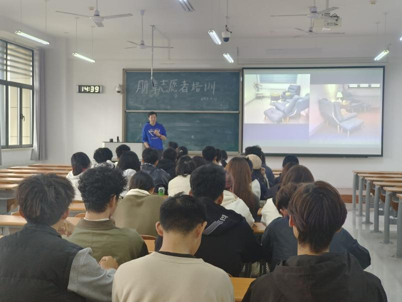 在培训中,王桂月和沈健首先强调了朋辈志愿者的重要作用,让朋辈志愿者们对即将承担的角色有了更深刻的理解和认识。接着详细地向大家介绍了心理学的起源与流派、常见的心理效应、心理健康的标准、常见心理困扰与心理异常,以及心理咨询、心理危机和朋辈心理辅导的基础知识。鼓励大家珍惜此次学习机会,学以致用,更好地为同学们服务。两位老师也向同学们推荐了一些心理健康的相关书籍供大家阅读和学习,希望大家能够更好地理解朋辈志愿者的工作,积极为周边的同学提供心理健康方面的支持和帮助。