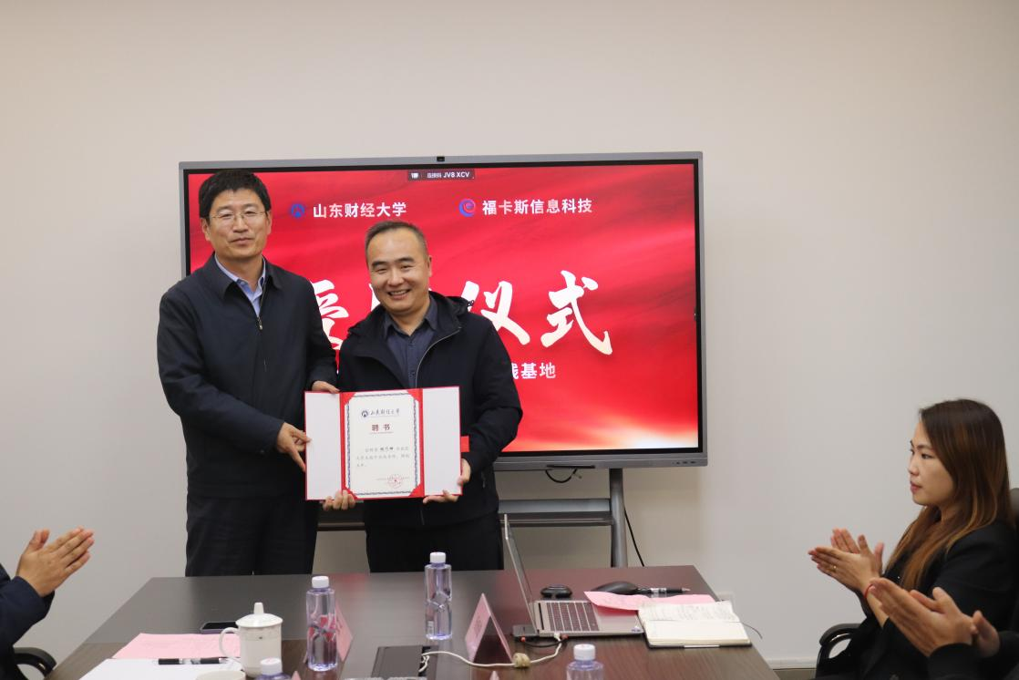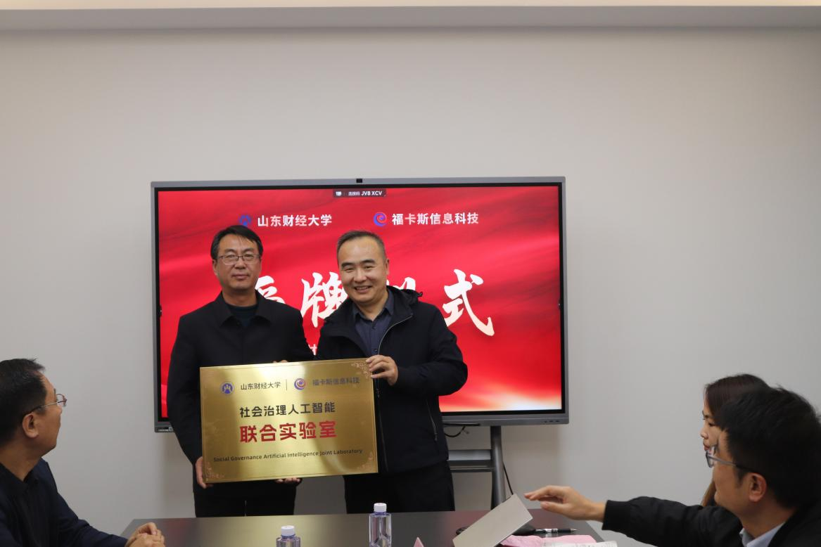 随后,赵奎皓向杨乃坤颁发山东财经大学创新实践基地牌匾和山东财经大学-福卡斯信息科技社会治理人工智能联合实验室牌匾,徐世星向杨乃坤颁发山东财经大学大学生校外实践导师聘书。之后双方就进一步加强合作展开深入讨论。